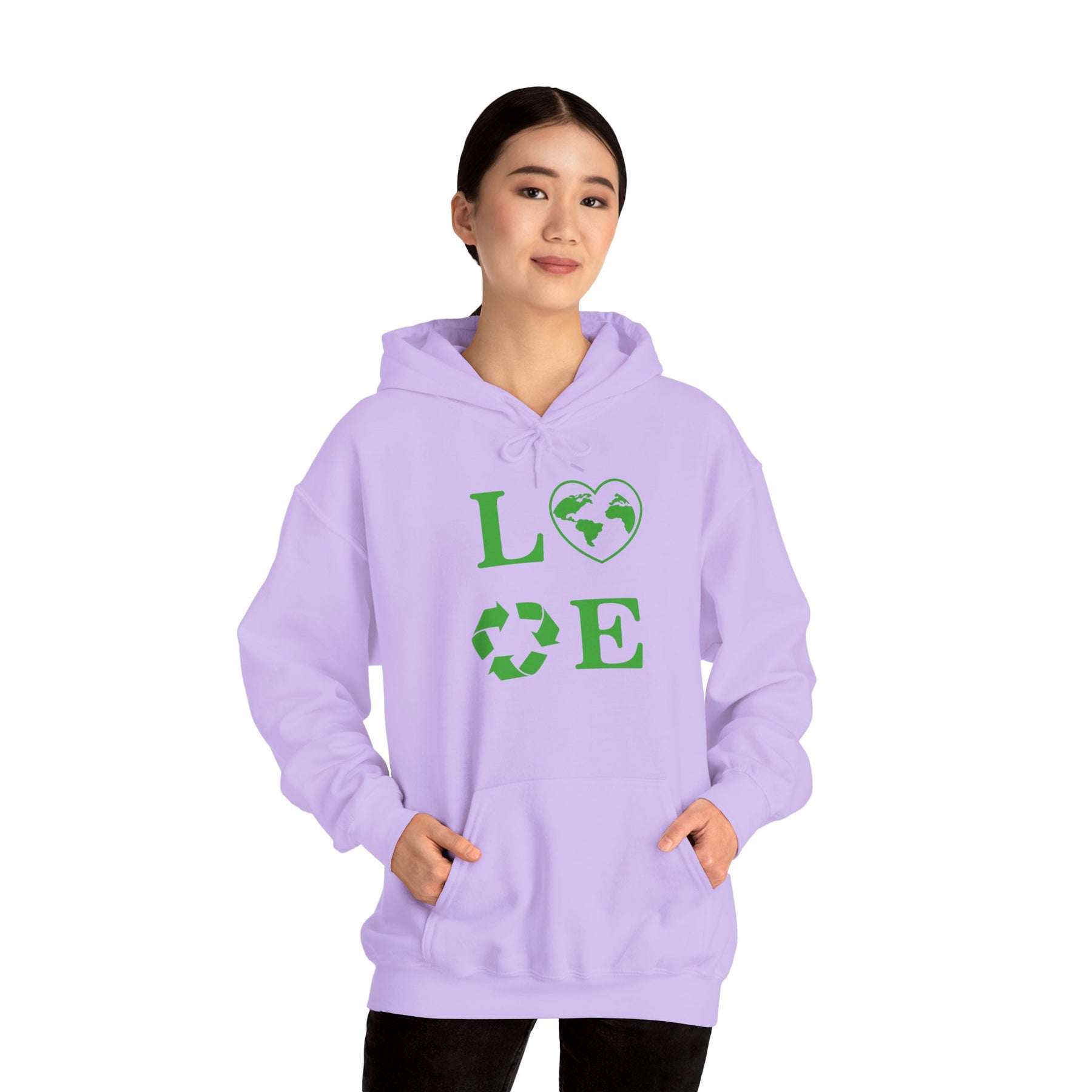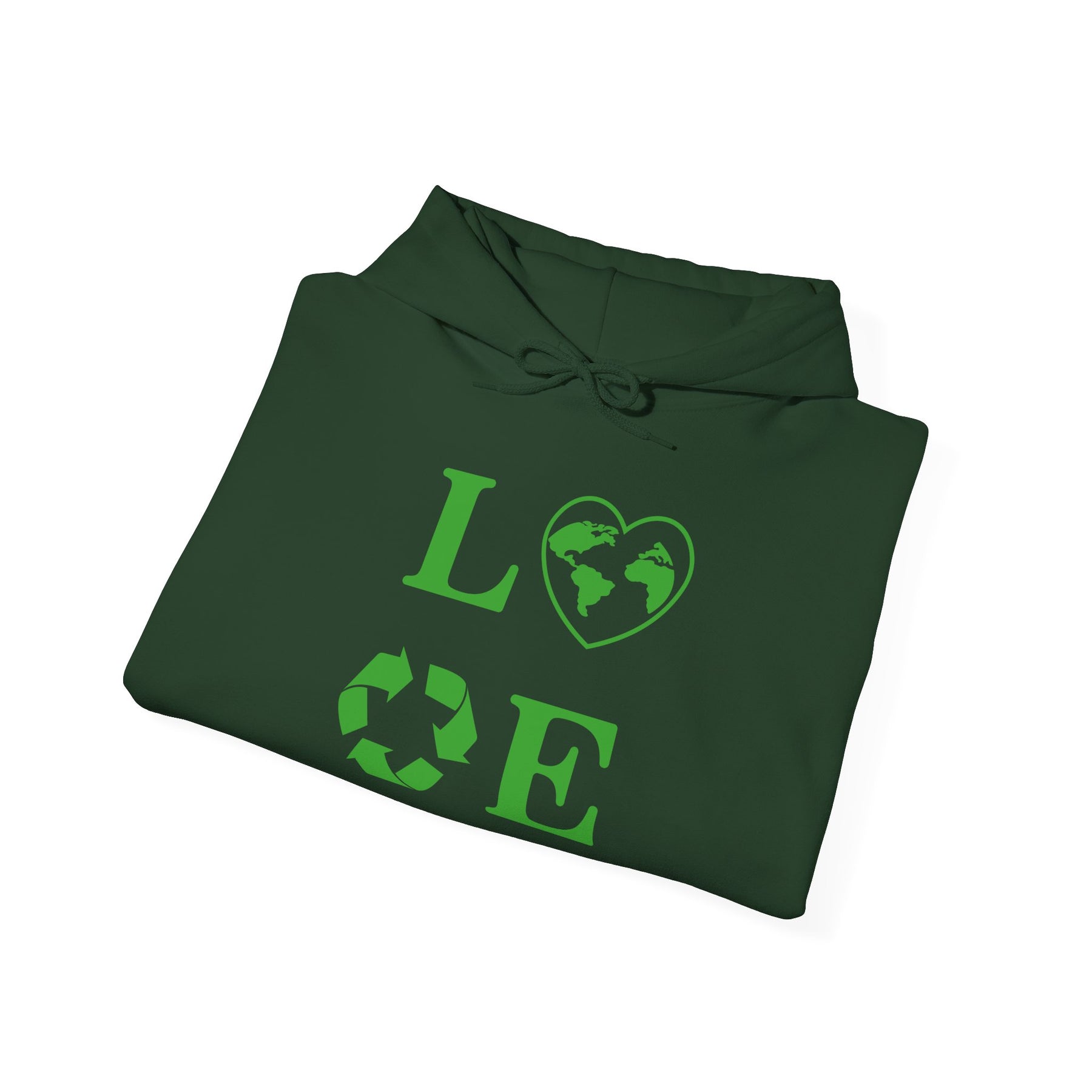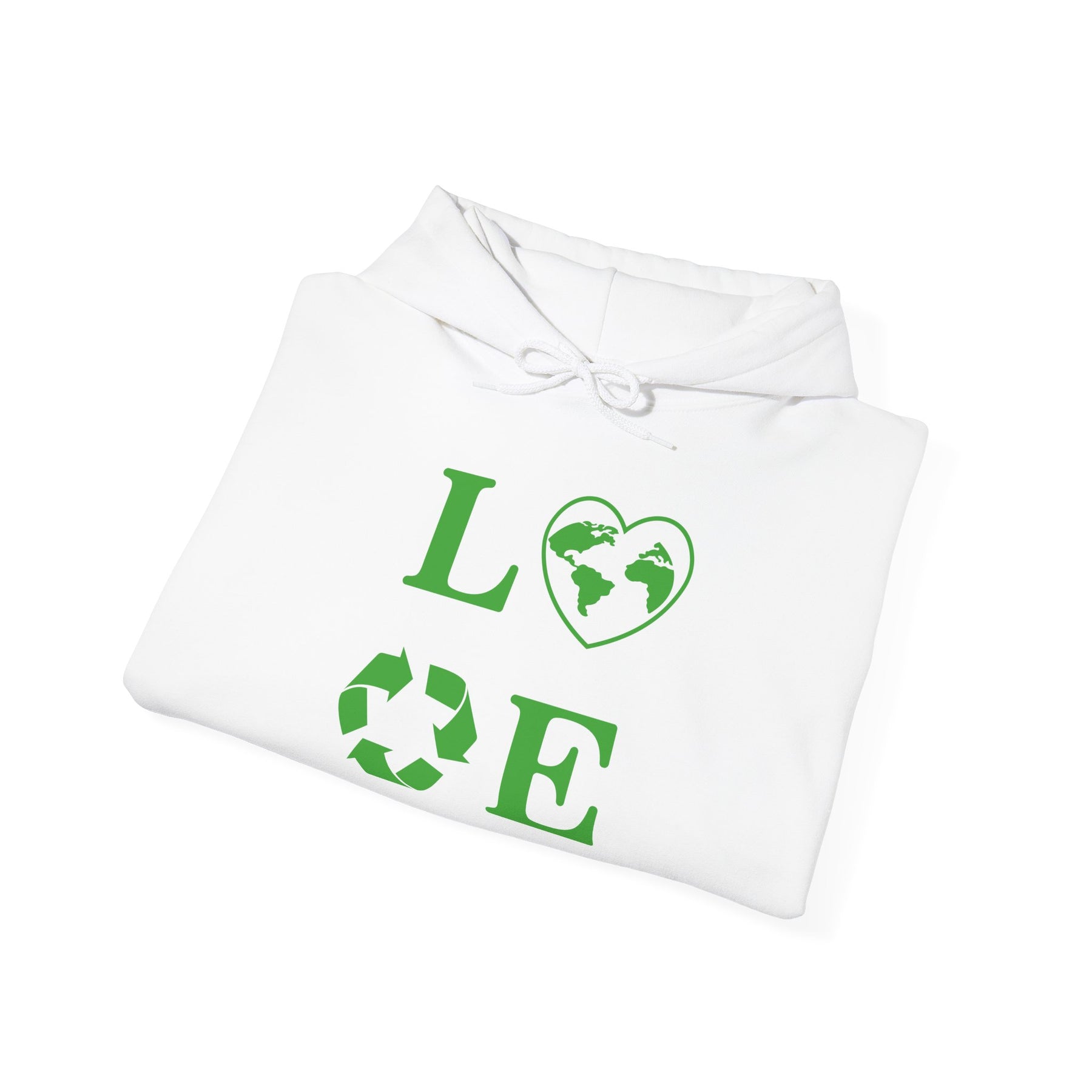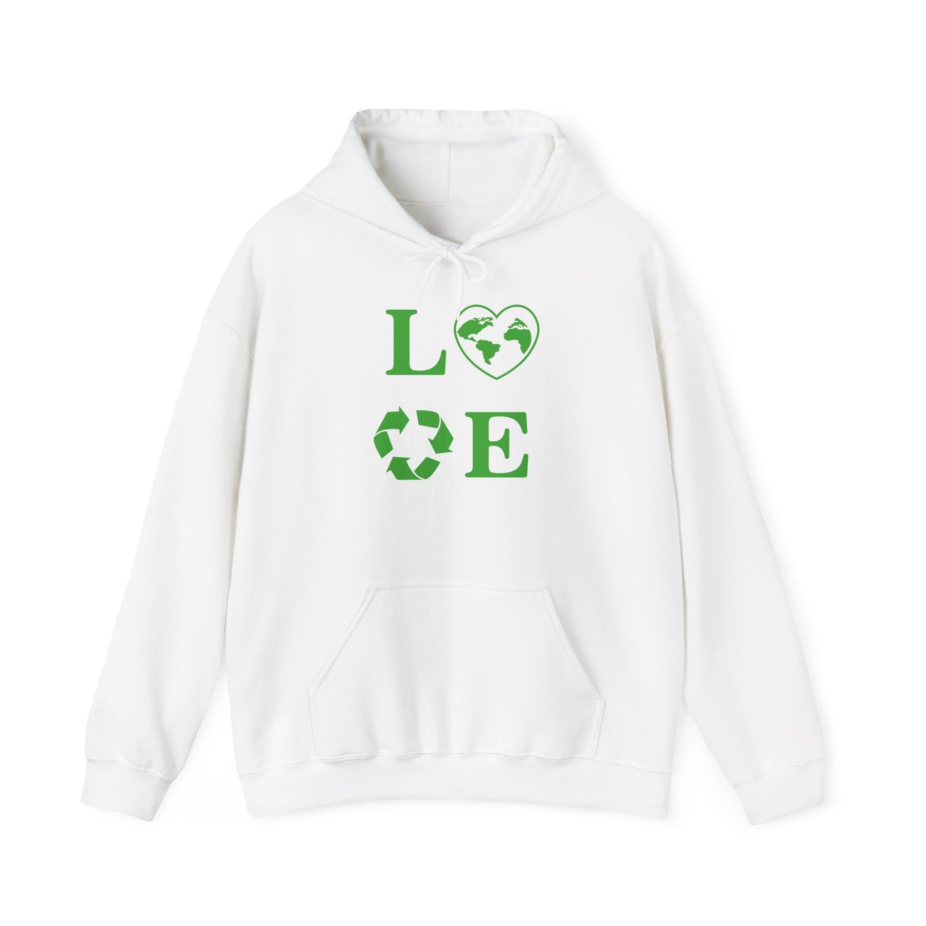 Stay cozy and stylish with this Love Unisex Hooded Sweatshirt featuring a heart and recycling design. This hoodie is perfect for anyone looking to make a statement about love and sustainability. It is ideal for individuals passionate about the environment and making a positive impact. Great for Valentine's Day, Earth Day, or everyday wear.
